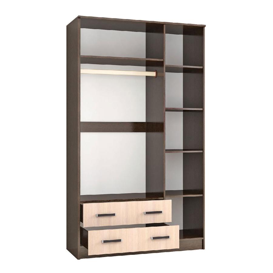 Шкафы шириной 1200 мм - комбинированные, есть отделение с полками для вещей и стационарная штанга для одежды.