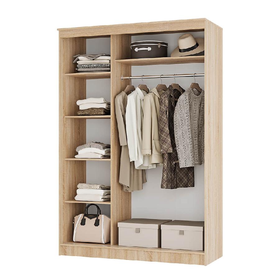 Внутри модель содержит все необходимые зоны для хранения одежды и обуви: большое отделение для плечиков, а также полки и ниши для остальных вещей.