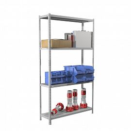 Полки стеллажа изготовлены с ребром жесткости и подштамповкой которая придает полке дополнительную жесткость и прочность. Высота бокового ребра составляет 33 мм;