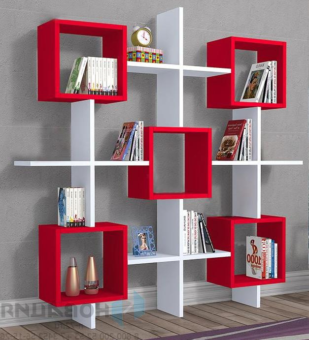 Настенная конструкция составляется из полуоткрытых полок и квадратных ячеек с нишами.