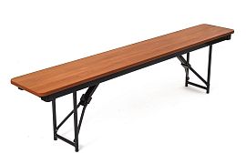 Рама скамьи из стального П-образного профиля толщиной 0,8мм надёжно соединена с сидением и имеет по углам специальные пластиковые заглушки, которые предохраняют скамьи от повреждений при складывании их друг на друга. Ножки из стальной трубы диаметром 20 мм с помощью специальных механизмов могут быть сложены параллельно сидению внутрь рамы и имеют устройства защиты от непроизвольного складывания. На ножках установлены пластмассовые колпачки-заглушки. Все элементы каркаса, ножек и механизмов сложения покрыты полимерной порошковой краской, цвета: чёрный, серый, «хром», остальные – по согласованию.