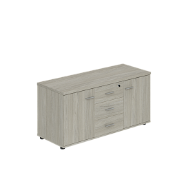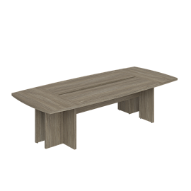 Столешница из ЛДСП 41 мм в форме “крыла” в кромке ПВХ 2 мм. Опоры из ЛДСП 41 мм в кромке ПВХ 2 мм по вертикальным торцам. Передняя панель состоит из двух поверхностей с разнонаправленной текстурой из ЛДСП 16 мм. Видимые вертикальные торцы накладки в кромке ПВХ 2мм.