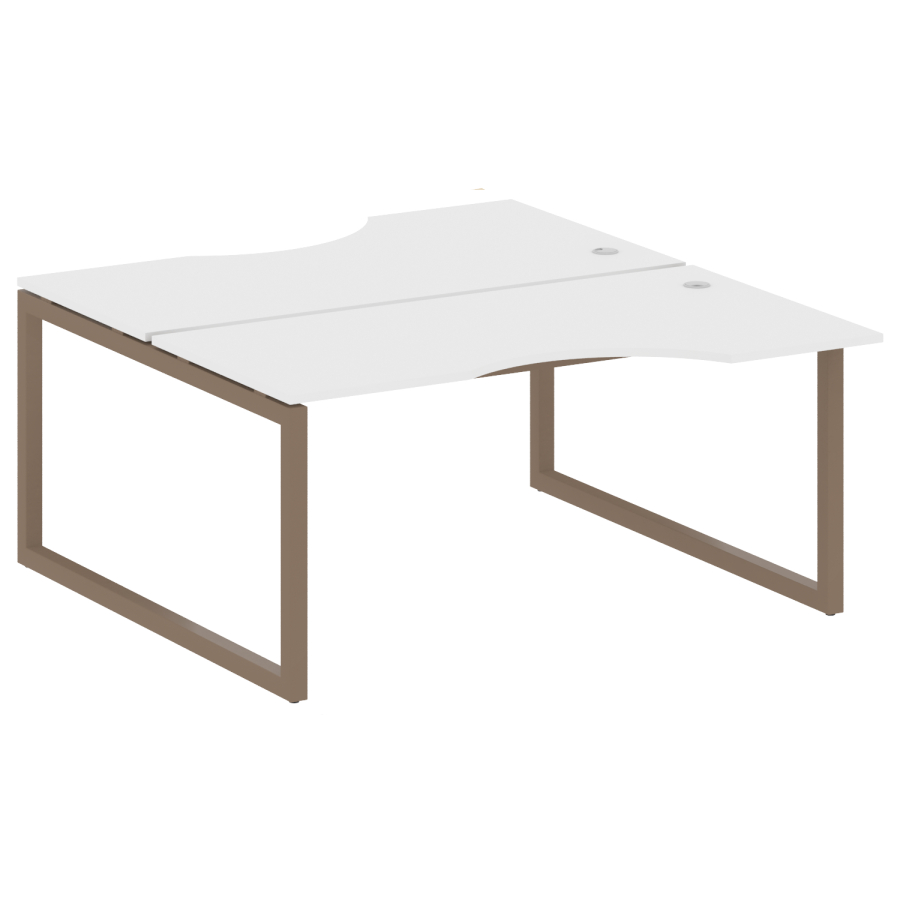 Столешницы имеют отверстия с пластиковыми заглушками кабель-канала серого цвета.