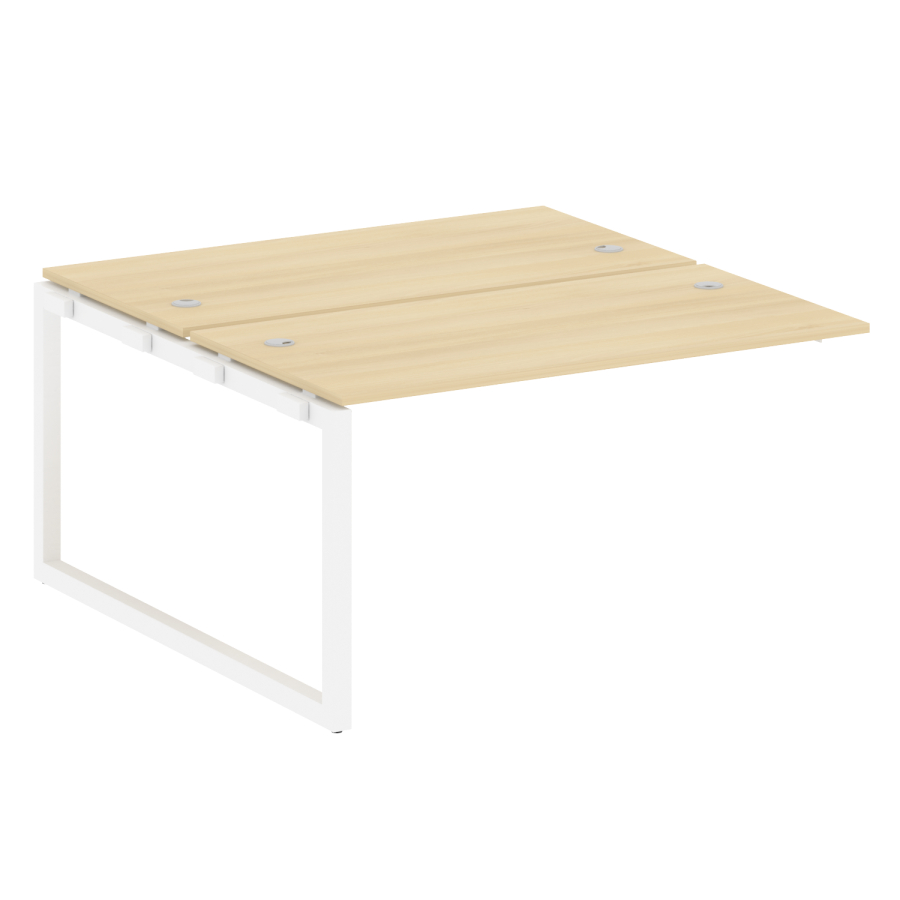 Столешницы имеют отверстия с пластиковыми заглушками кабель-канала серого цвета.