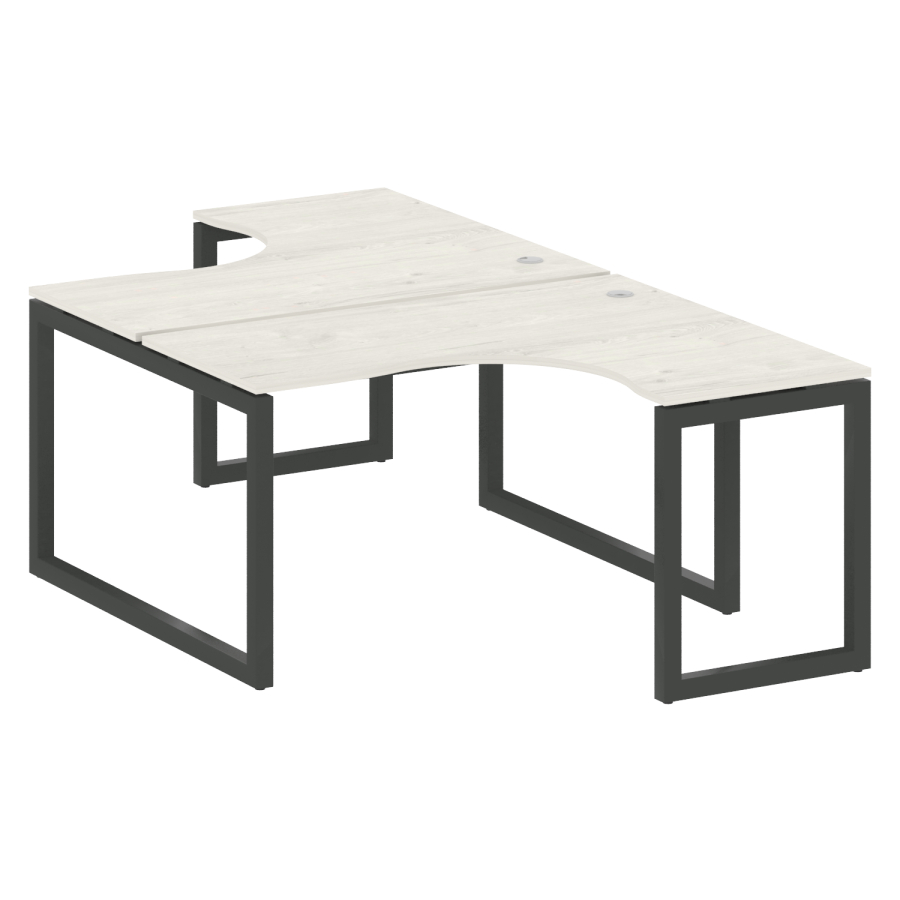 Столешницы имеют отверстия с пластиковыми заглушками кабель-канала серого цвета.