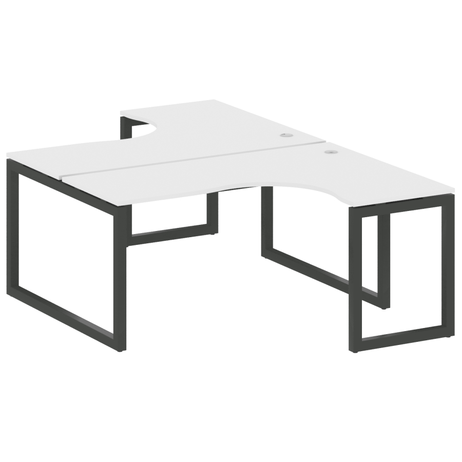 Столешницы имеют отверстия с пластиковыми заглушками кабель-канала серого цвета.