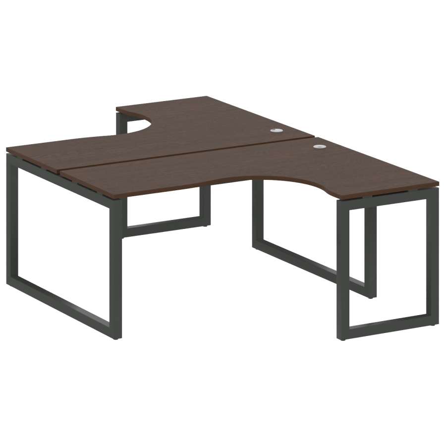 Столешницы имеют отверстия с пластиковыми заглушками кабель-канала серого цвета.