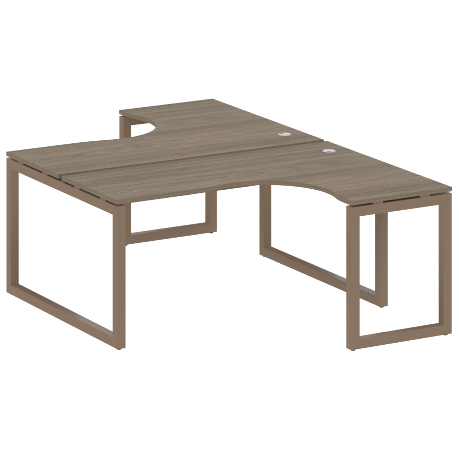 Столешницы имеют отверстия с пластиковыми заглушками кабель-канала серого цвета.