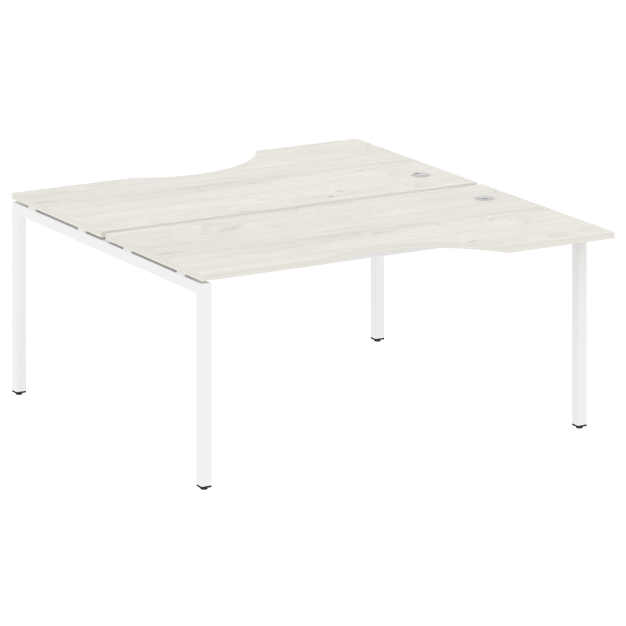 Столешницы имеют отверстия с пластиковыми заглушками кабель-канала серого цвета.