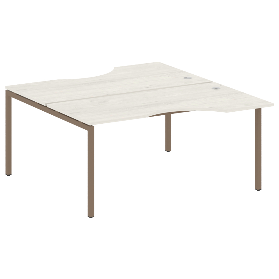 Столешницы имеют отверстия с пластиковыми заглушками кабель-канала серого цвета.