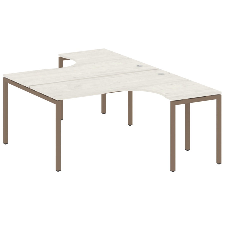 Столешницы имеют отверстия с пластиковыми заглушками кабель-канала серого цвета.