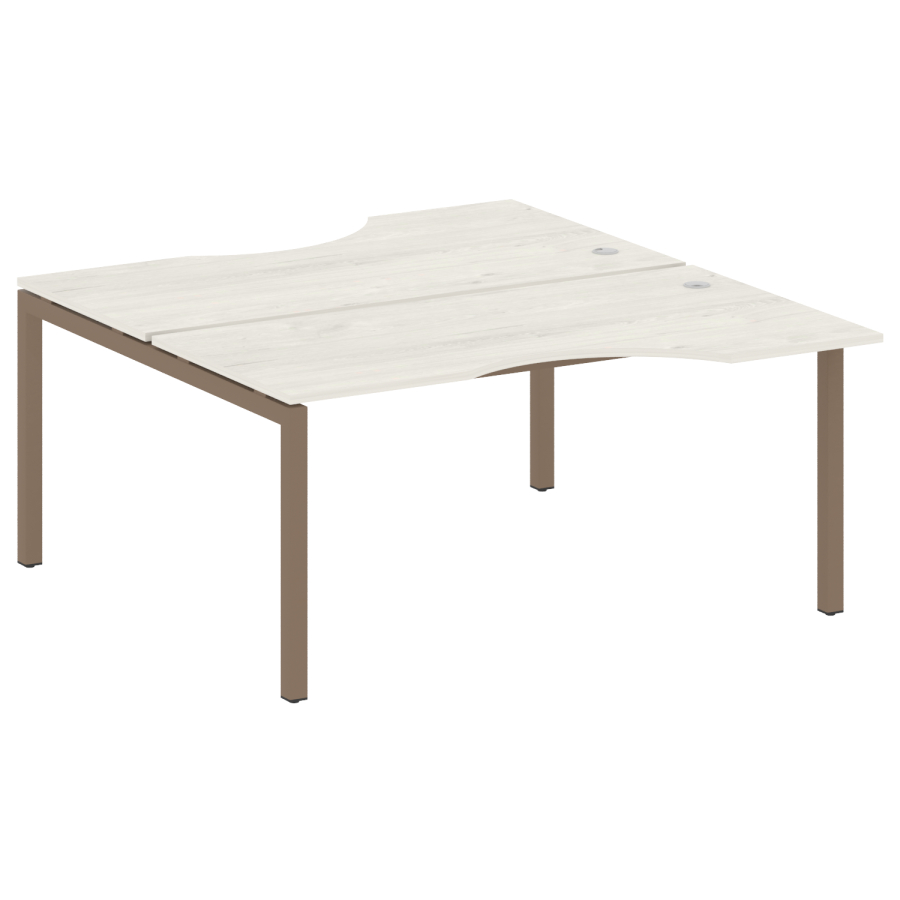 Столешницы имеют отверстия с пластиковыми заглушками кабель-канала серого цвета.