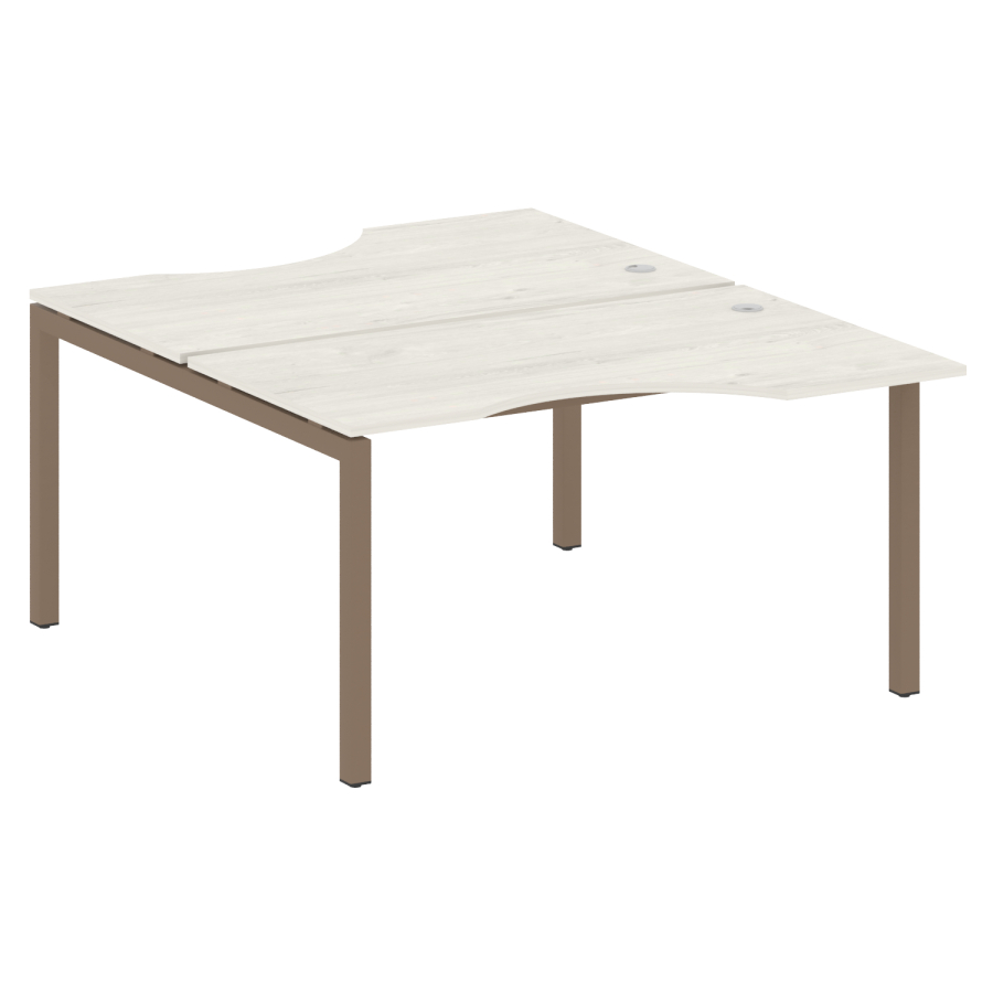 Столешницы имеют отверстия с пластиковыми заглушками кабель-канала серого цвета.