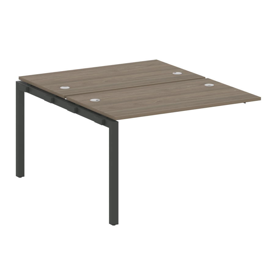 Столешницы имеют отверстия с пластиковыми заглушками кабель-канала серого цвета.