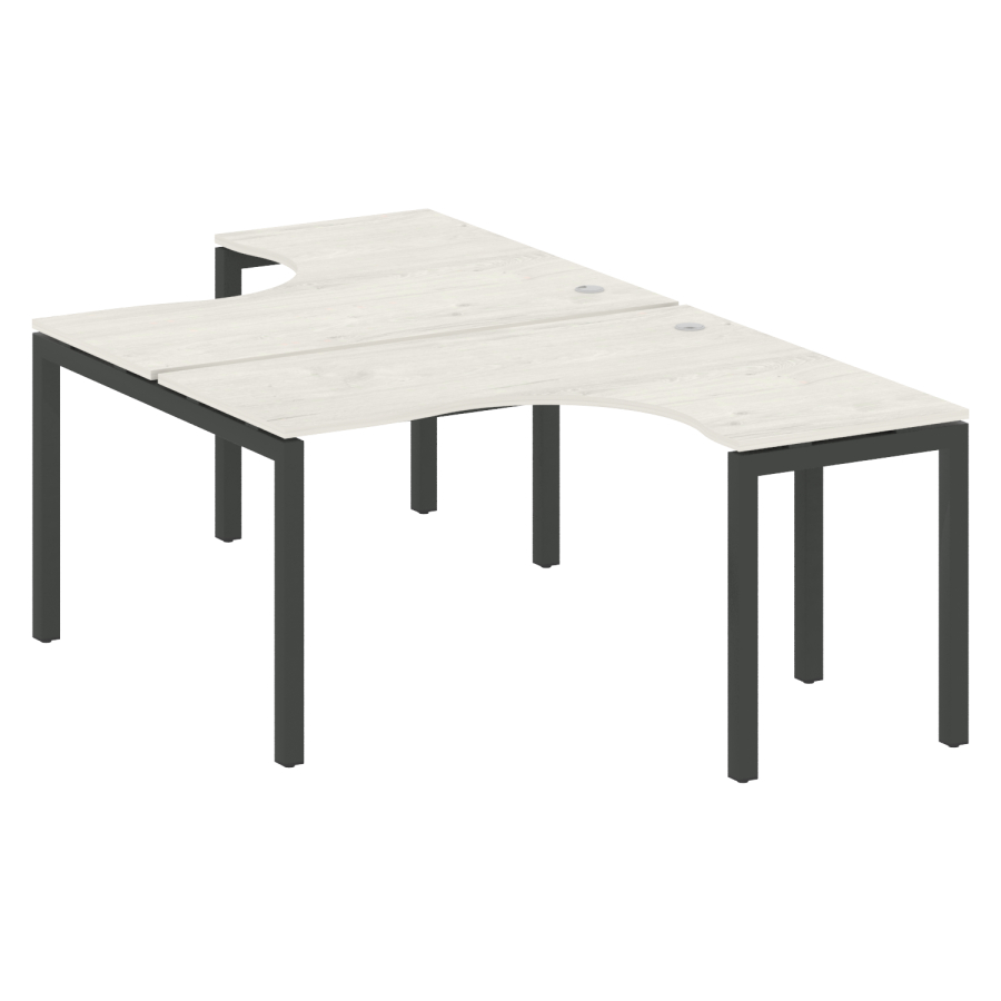 Столешницы имеют отверстия с пластиковыми заглушками кабель-канала серого цвета.