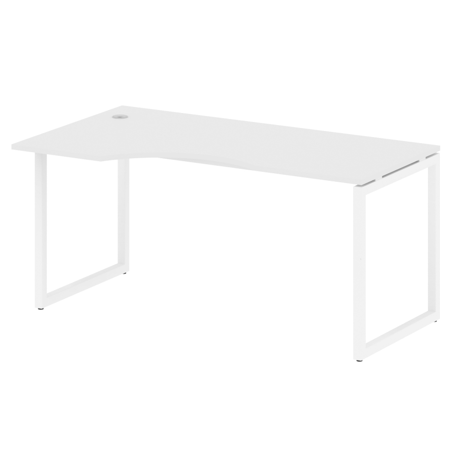 Столешницы имеют отверстия с пластиковыми заглушками кабель-канала серого цвета.