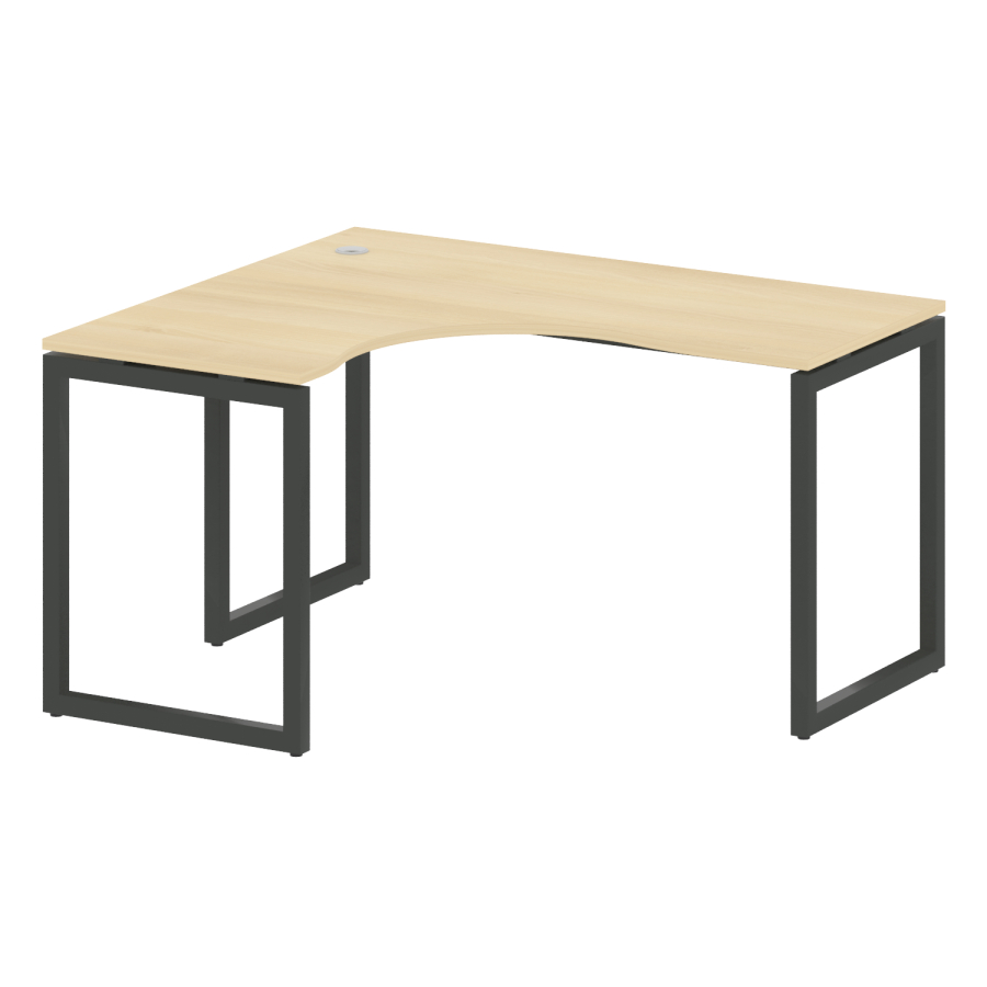 Столешницы имеют отверстия с пластиковыми заглушками кабель-канала серого цвета.