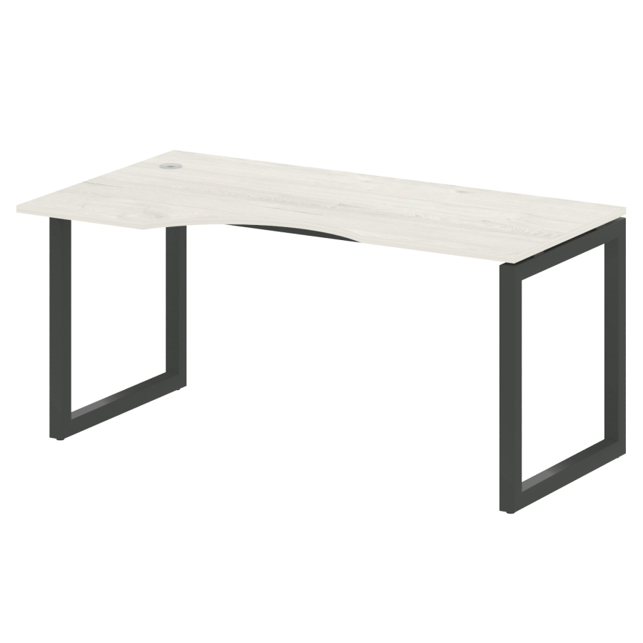 Столешницы имеют отверстия с пластиковыми заглушками кабель-канала серого цвета.