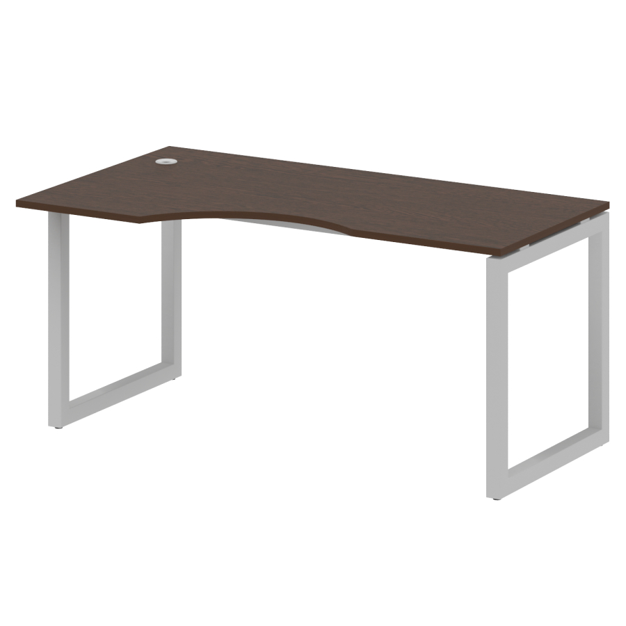 Столешницы имеют отверстия с пластиковыми заглушками кабель-канала серого цвета.