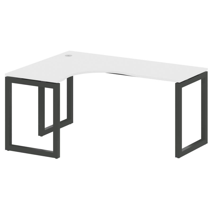 Столешницы имеют отверстия с пластиковыми заглушками кабель-канала серого цвета.