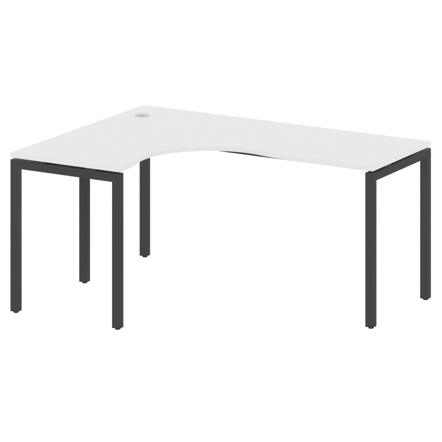 Столешницы имеют отверстия с пластиковыми заглушками кабель-канала серого цвета.