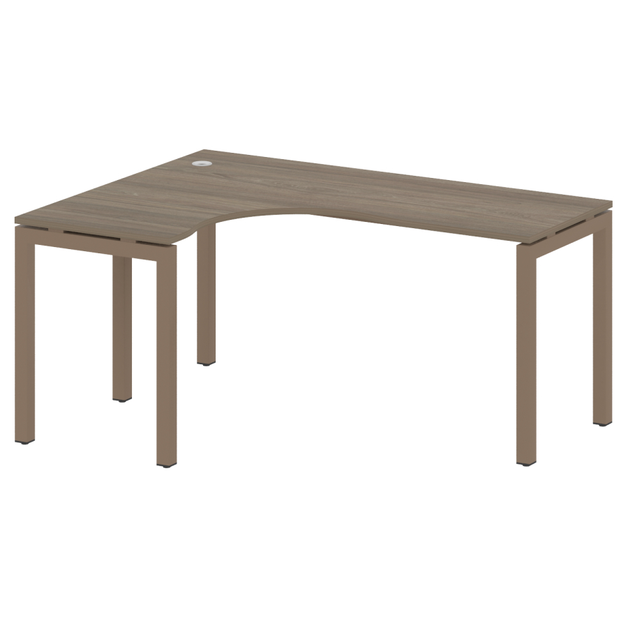 Столешницы имеют отверстия с пластиковыми заглушками кабель-канала серого цвета.