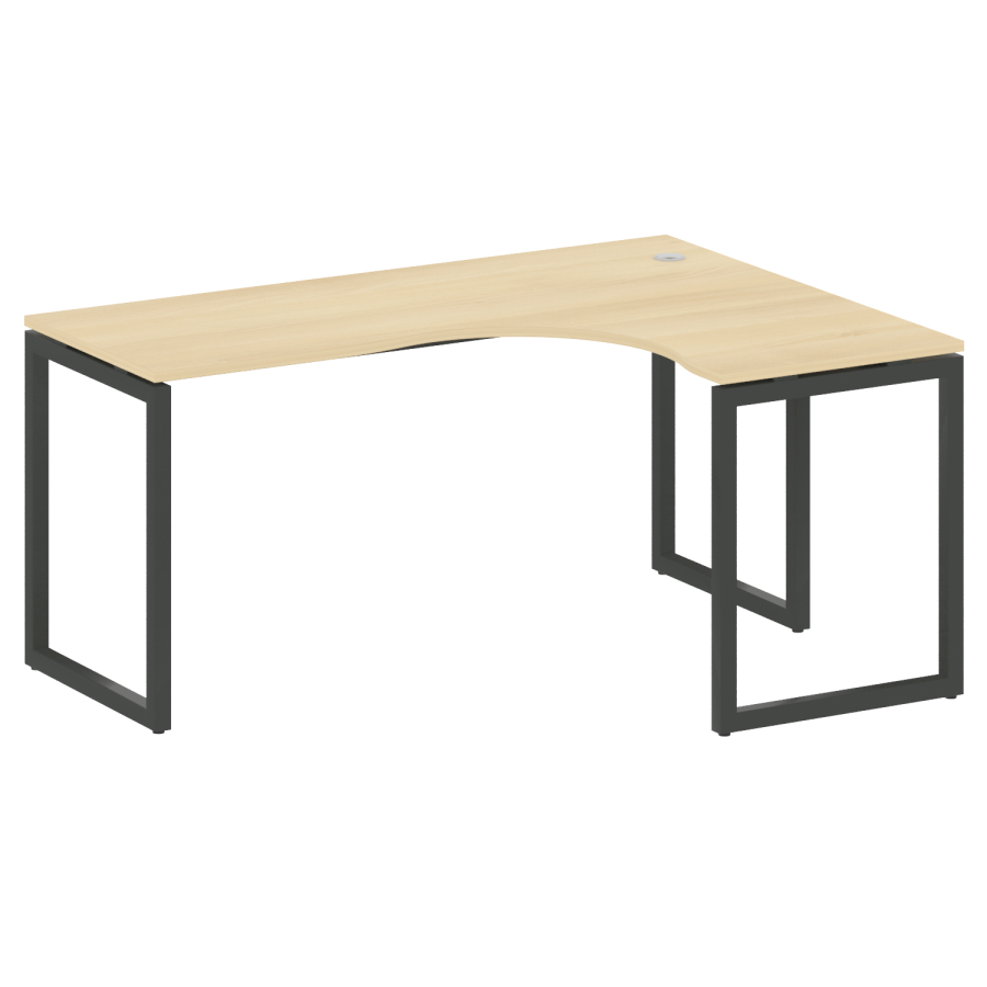 Столешницы имеют отверстия с пластиковыми заглушками кабель-канала серого цвета.