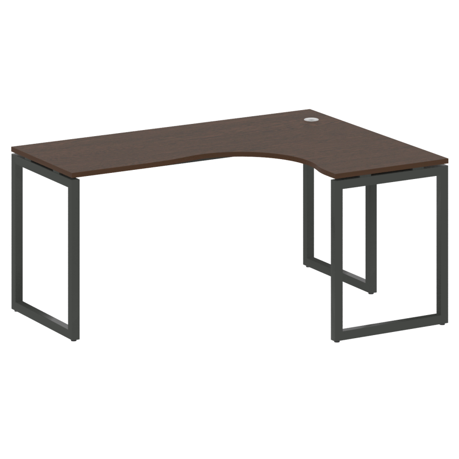 Столешницы имеют отверстия с пластиковыми заглушками кабель-канала серого цвета.