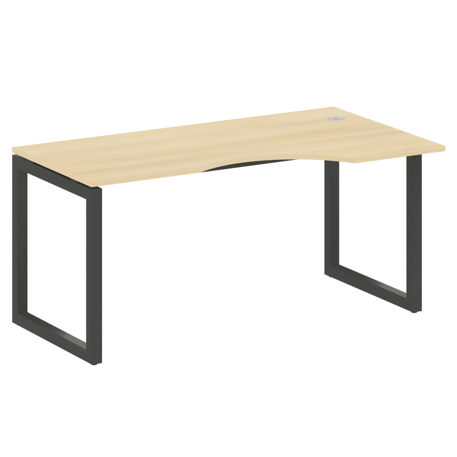 Столешницы имеют отверстия с пластиковыми заглушками кабель-канала серого цвета.