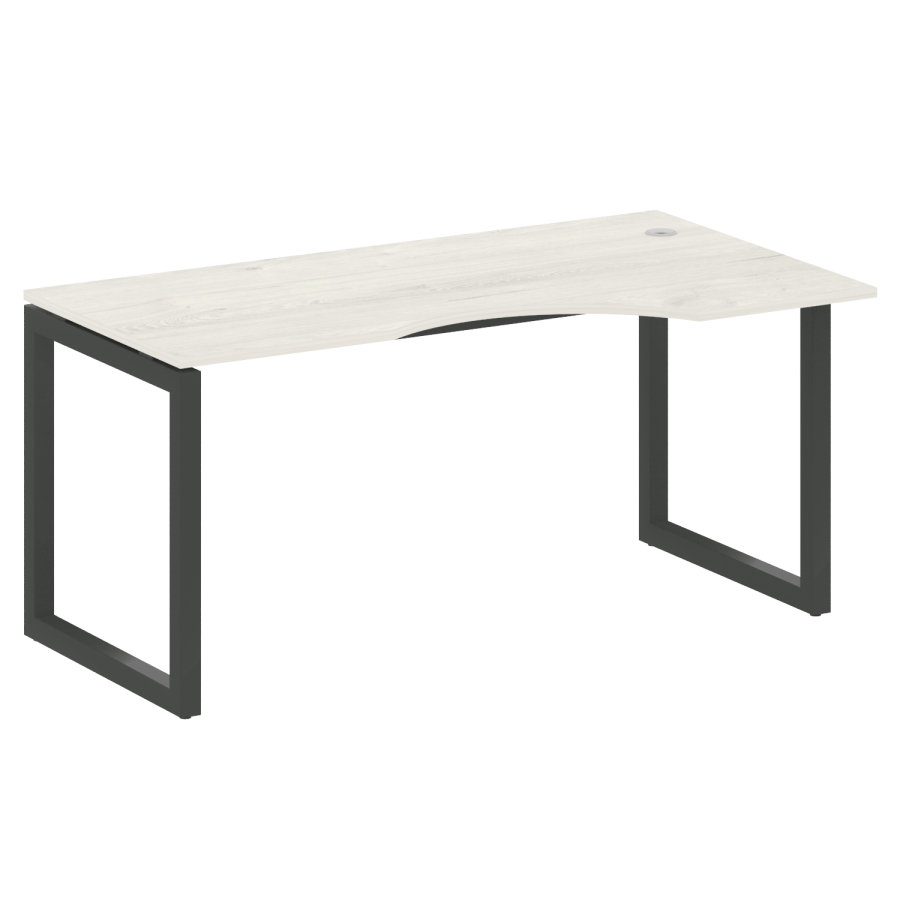 Столешницы имеют отверстия с пластиковыми заглушками кабель-канала серого цвета.
