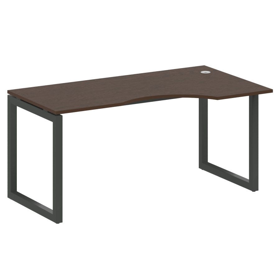 Столешницы имеют отверстия с пластиковыми заглушками кабель-канала серого цвета.