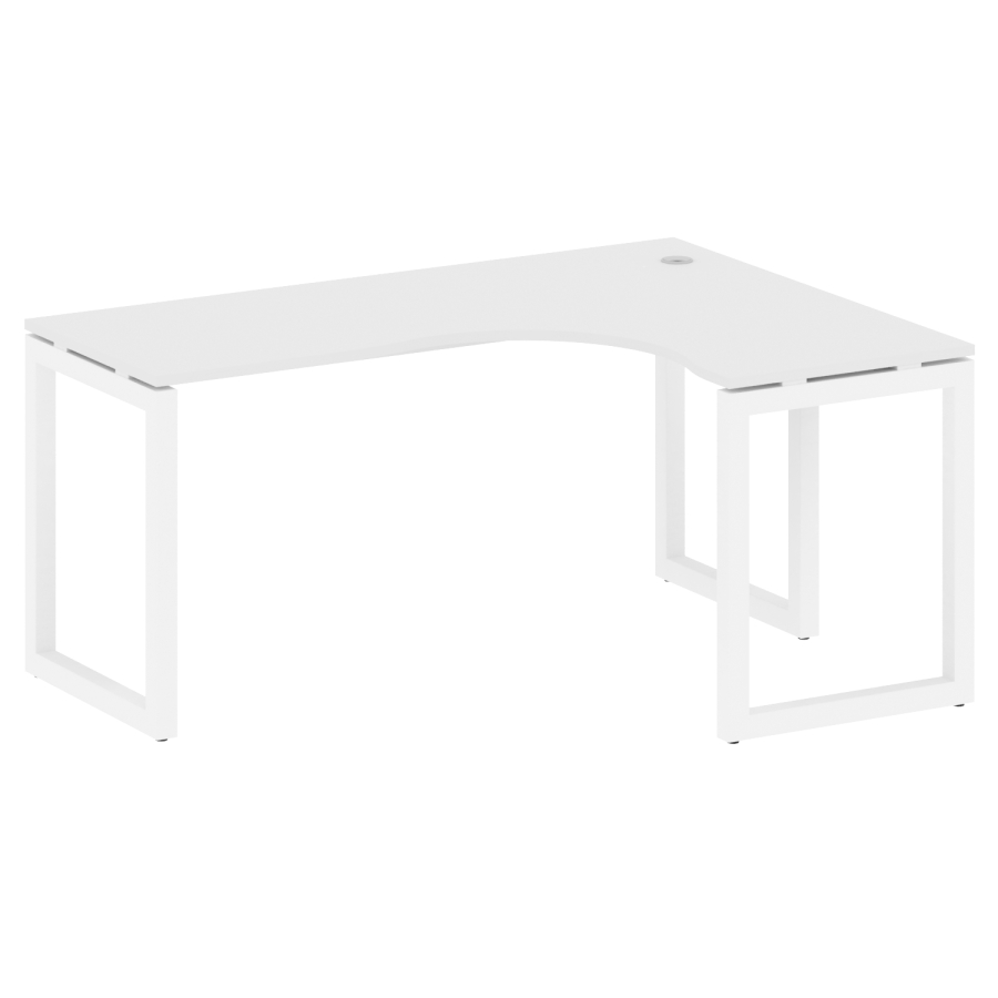 Столешницы имеют отверстия с пластиковыми заглушками кабель-канала серого цвета.