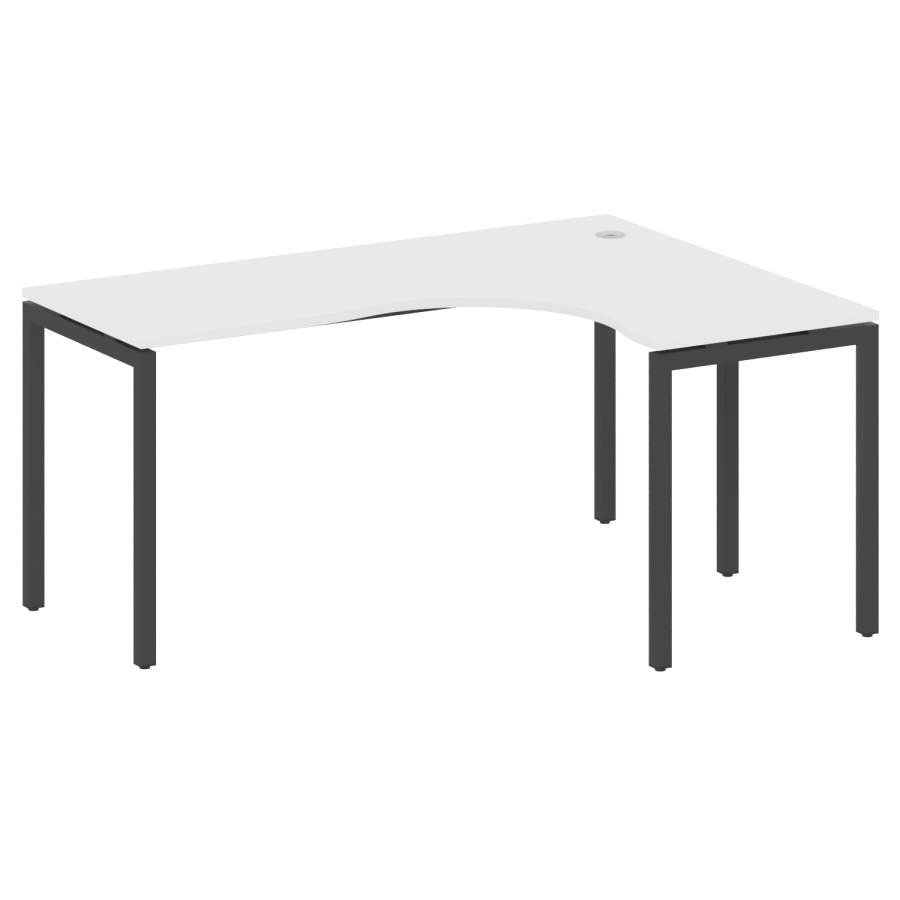 Столешницы имеют отверстия с пластиковыми заглушками кабель-канала серого цвета.
