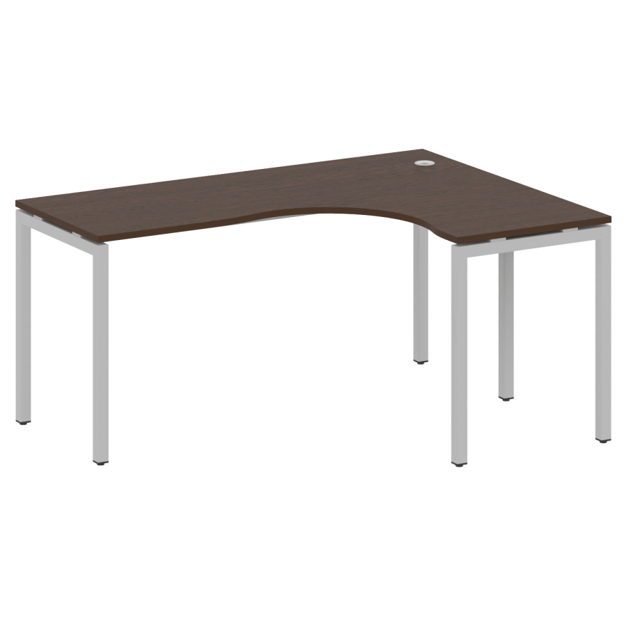 Столешницы имеют отверстия с пластиковыми заглушками кабель-канала серого цвета.