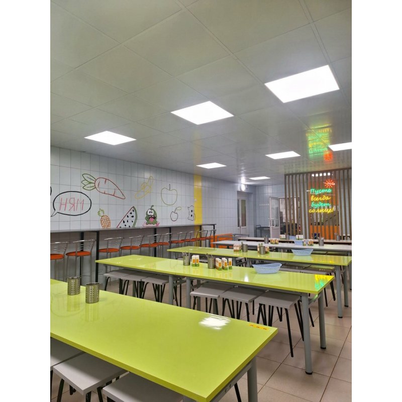 Имеет удобную конструкцию, которая позволяет подвешивать табуретки под столешницу, что упрощает уборку помещения.