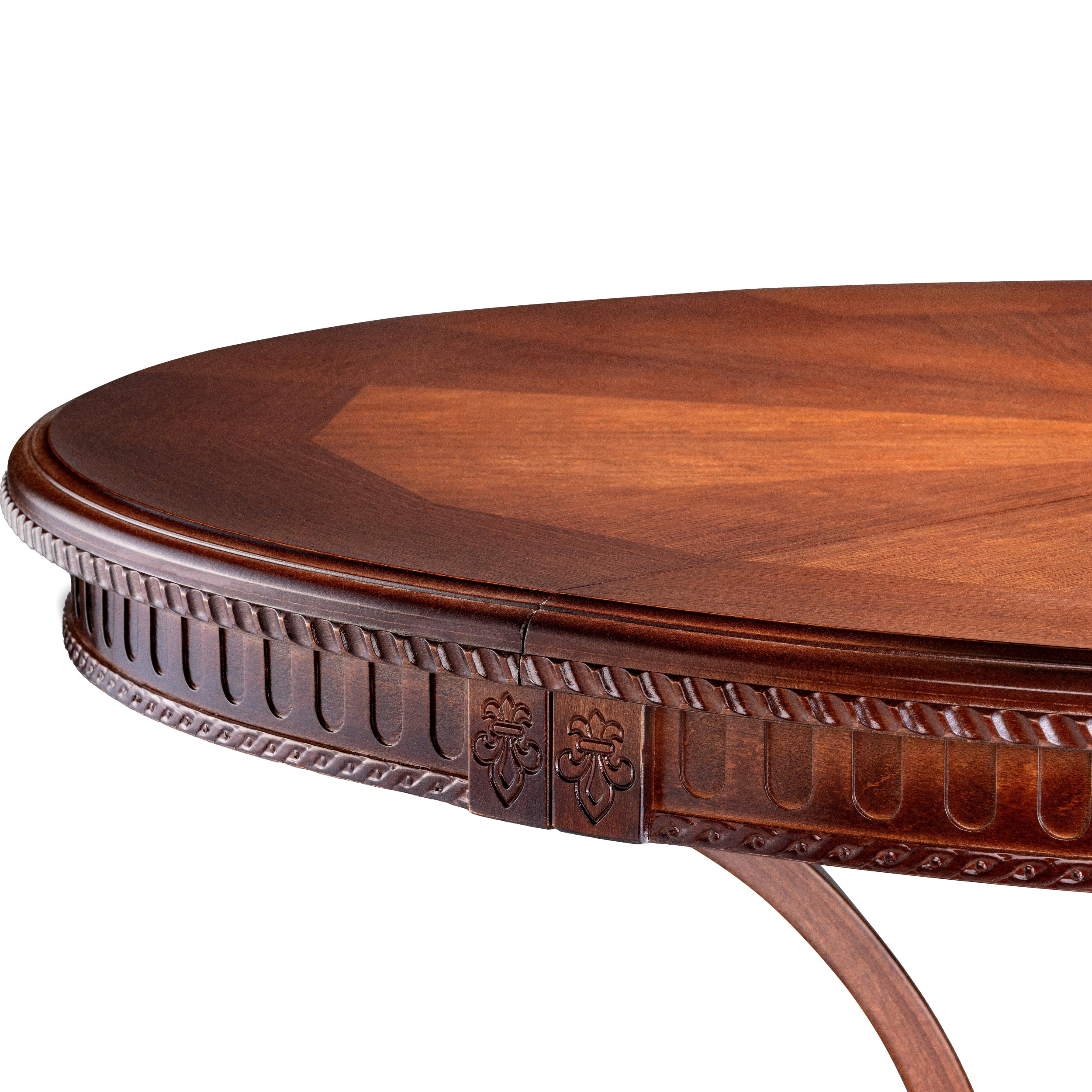 Обеденный деревянный раздвижной стол Лорден D120 изготовлен из массива кавказского бука. Столешница круглой формы диаметром 120 сантиметров в сложенном