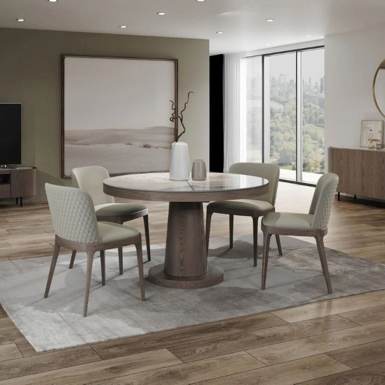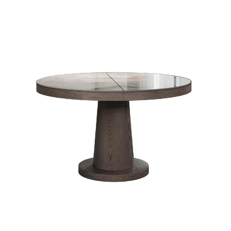 Стол с круглой столешницей, раскладывающийся от 1100 до 1500 мм, представляет собой элегантное и удобное решение для обеденной зоны. Столешница выполнена из глянцевой керамики толщиной 6 мм, что придает ей стильный и современный вид. Благодаря возможности раскладывания, этот стол идеально подойдет как для небольших, так и для просторных помещений, позволяя удобно разместить большее количество гостей.