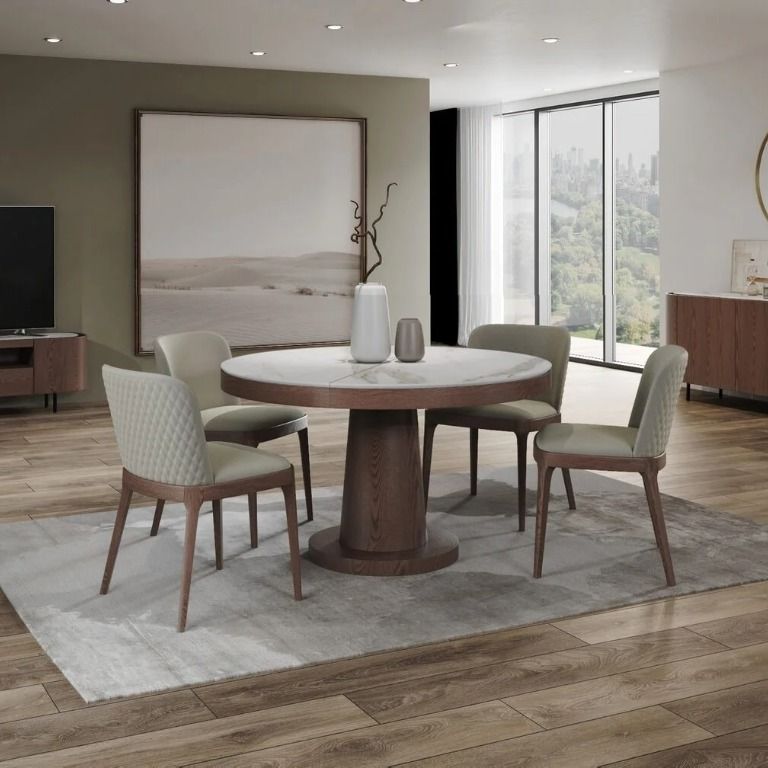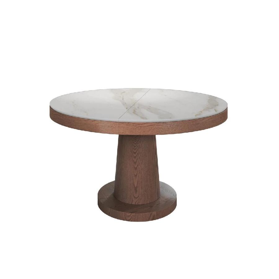 Стол с круглой столешницей, раскладывающийся , представляет собой элегантное и удобное решение для обеденной зоны. Столешница выполнена из матовой керамики 6 мм, что придает ей стильный и современный вид.