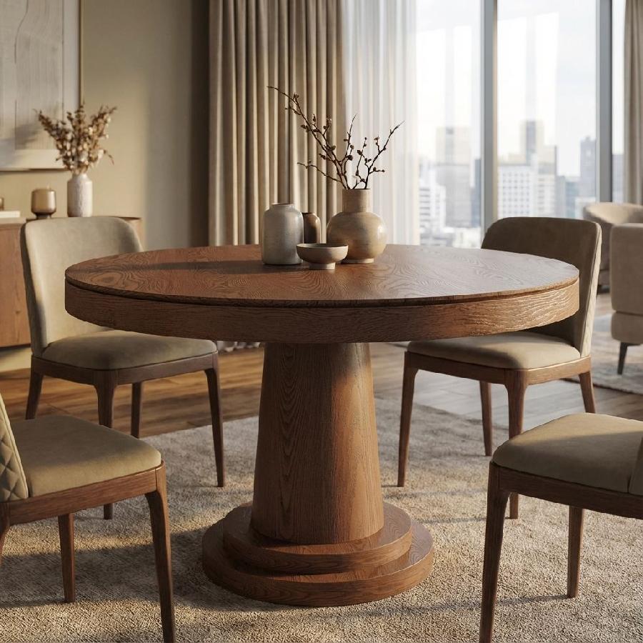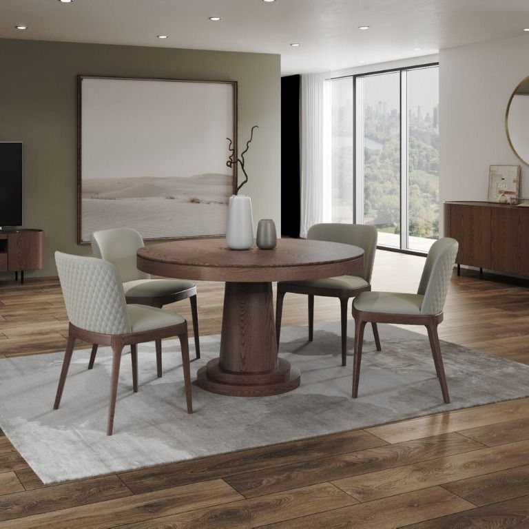 Стол с круглой столешницей, раскладывающийся от 1100 до 1500 мм, представляет собой элегантное и удобное решение для обеденной зоны. Столешница выполнена из шпона толщиной 1 мм, что придает ей стильный и современный вид. Благодаря возможности раскладывания, этот стол идеально подойдет как для небольших, так и для просторных помещений, позволяя удобно разместить большее количество гостей.