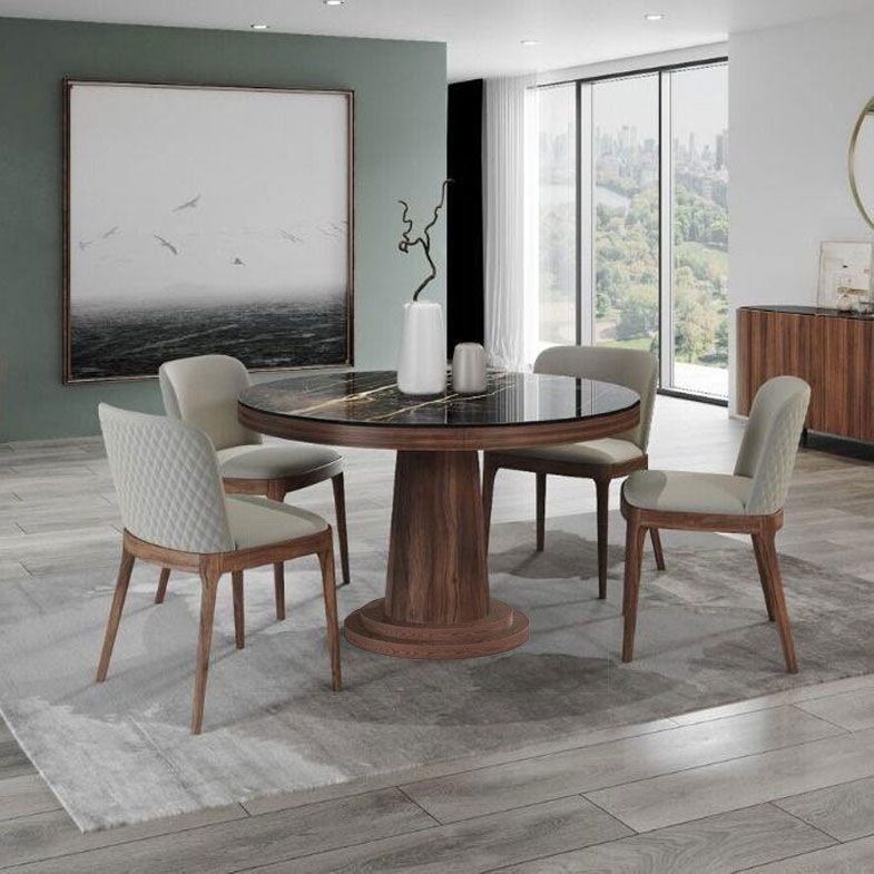 Стол с круглой столешницей, не раскладывающийся , представляет собой элегантное и удобное решение для обеденной зоны. Столешница выполнена из глянцевой керамики 6 мм., что придает ей стильный и современный вид.