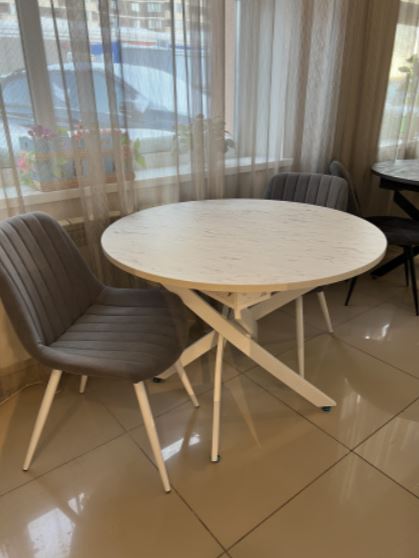 Вес 24 кг . Объём 0,157 м3. Требуется сборка Да. Высота 750 мм. Ширина 1000 мм. Глубина 1000 мм. Материал ЛДСП. Стиль Современный. Размер в разложенном виде 750*1310*1000 мм Трансформация Раздвижной Материал основания металл Форма столешницы круг Материал столешницы ЛДСП.