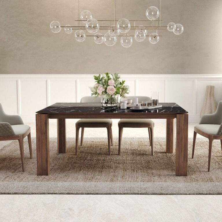 Прямоугольная форма стола Aron идеально подходит для современных интерьеров, обеспечивая достаточное пространство для комфортного размещения гостей и семейных трапез. Столешница выполнена из глянцевой керамики 6 мм, что придает изделию элегантный внешний вид и делает его устойчивым к царапинам и другим механическим повреждениям. Столешница также обеспечивает легкость в уходе, не требуя особых усилий для поддержания чистоты.