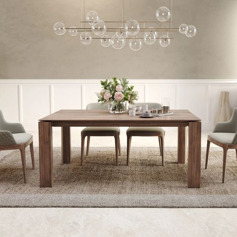 Прямоугольная форма стола Aron идеально подходит для современных интерьеров, обеспечивая достаточное пространство для комфортного размещения гостей и семейных трапез. Столешница выполнена из шпона, что придает изделию элегантный внешний вид и делает его устойчивым к царапинам и другим механическим повреждениям. Столешница также обеспечивает легкость в уходе, не требуя особых усилий для поддержания чистоты.