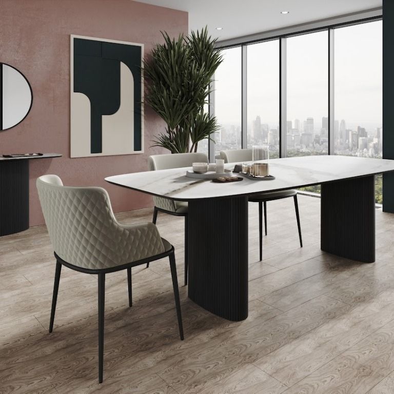Стол Nolan — это воплощение стиля и изысканности. Он имеет овальную столешницу, изготовленную из керамики и шпона, а также металлическое основание. Чёрная металлическая опора придаёт столу сдержанный и элегантный вид, что делает его идеальным дополнением для различных интерьеров, особенно в современном и индустриальном стиле. Столешница из керамики привносит нотки натуральности и тепла, создавая уютную атмосферу в помещении. Стол Nolan гармонично сочетает в себе современные и природные элементы, что позволяет ему легко вписаться в любой интерьер.