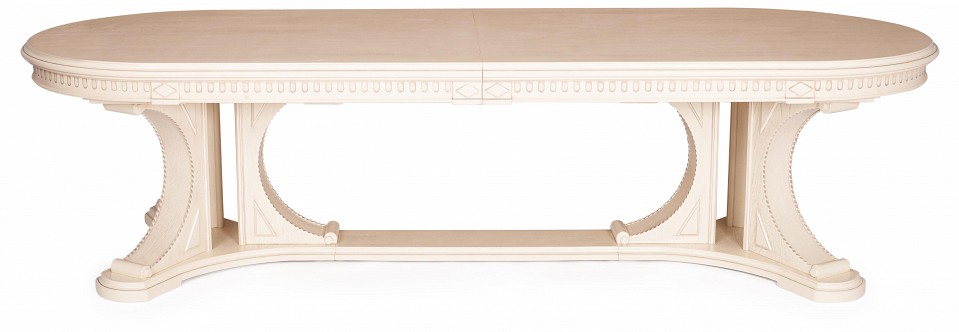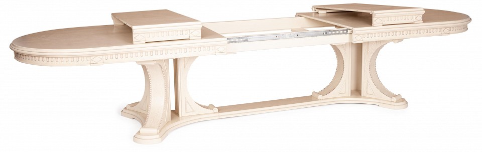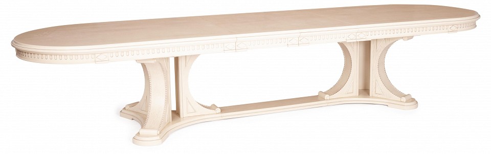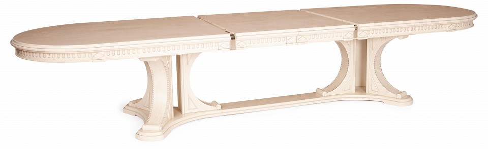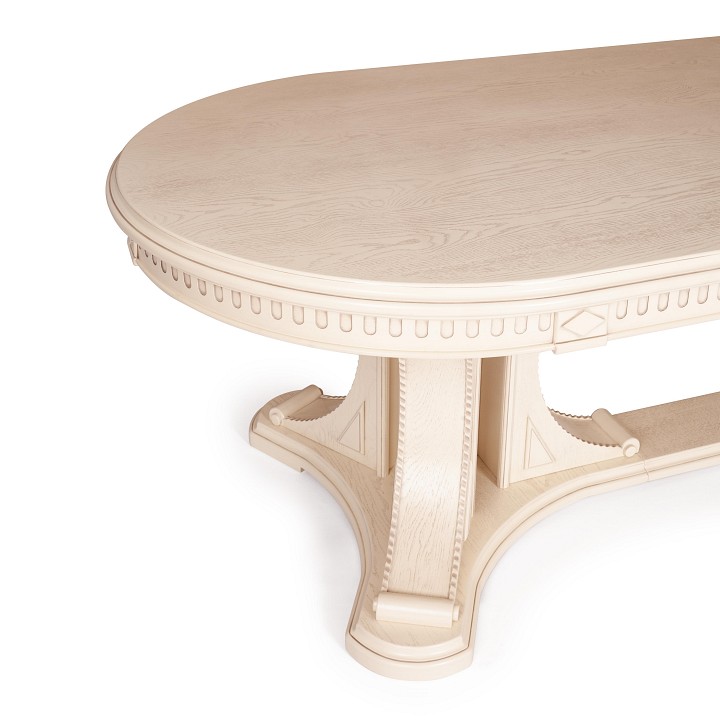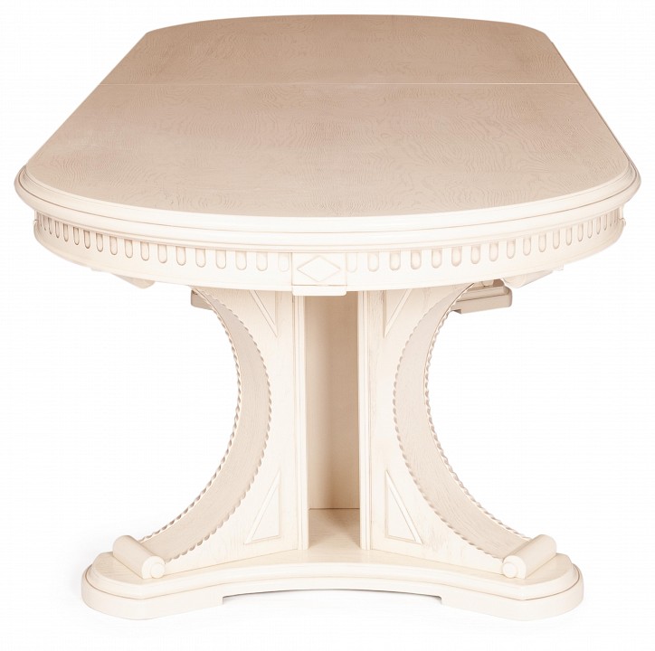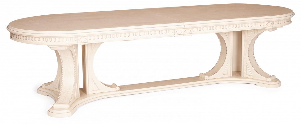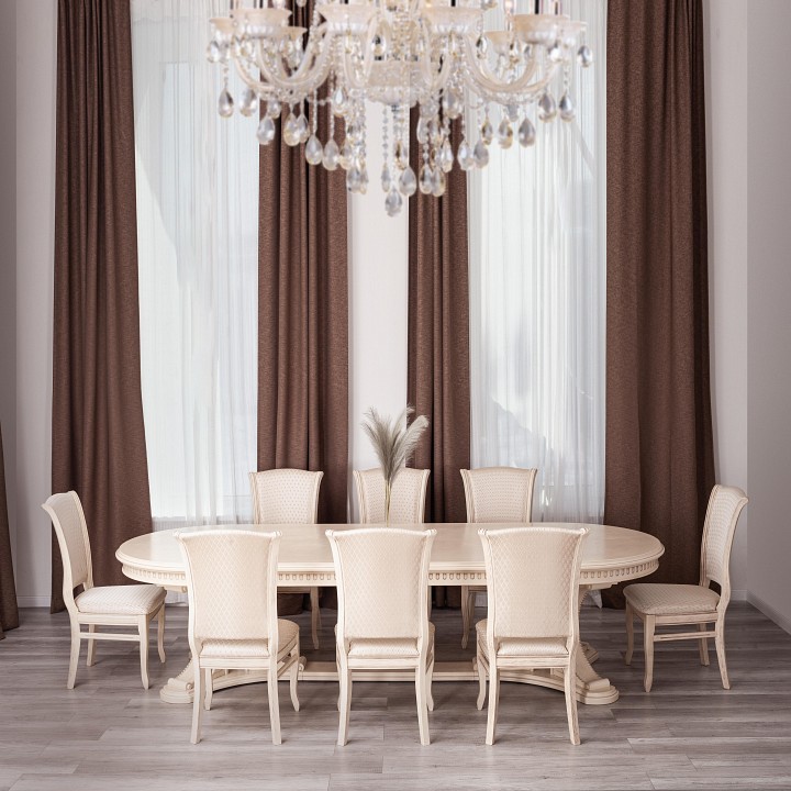 Необычный дизайн стола Versal добавит черты индивидуальности любому дому. Эта изысканная модель не просто деталь интерьера, а необходимый предмет мебели, без которого не обходится ни одна столовая или кухня. Благодаря двум внутренним вставкам обеденная зона может быть увеличена на 50 или 100 сантиметров в зависимости от ваших потребностей, за столом можно разместить от 8 до 12 человек. Овальная столешница из МДФ, шпонированна дубом. Такое покрытие обеспечивает изделию прочность, износостойкость и устойчивость к деформации. Великолепные гнутые изящные опоры и декоративные элементы из массива бука придают столу особый шарм и элегантность. Модель не требует специального ухода, обладает долгим сроком службы и отличными эксплуатационными качествами. Овальный раздвижной стол функционален и практичен, станет изысканным украшением любого интерьера. Его превосходное качество и великолепный внешний вид привнесут неповторимую атмосферу в обеденное пространство в вашем доме.