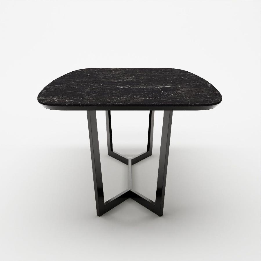 Керамическое покрытие стола не боится влаги, устойчиво к перепадам температур, на нем можно резать продукты без использования кухонной доски. Рисунок каждой столешницы уникален. Черный вариант имеет светлые вкрапления и линии. В хаотичных узорах можно найти разнообразные формы, либо воспринимать их как абстракции. За данным столом легко поместится 6 - 8 человек.
