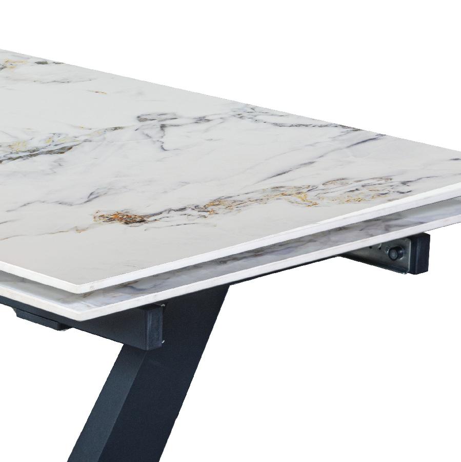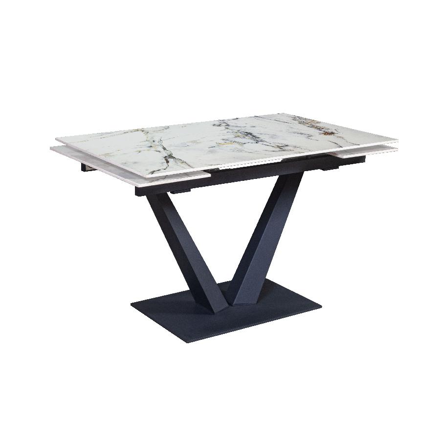 Стол с керамической столешницей «Malibu» представляет собой изысканное и функциональное обеденное место для вашего дома. Поверхность столешницы, выполненная из керамики, обеспечивает прочность, легкость в уходе и устойчивость к царапинам и температурным изменениям. Стильное металлическое основание дарит стабильность и надежность, дополняя современный дизайн стола. Данный стол идеально подходит для семейных обедов и встреч с друзьями, создавая уютную и стильную обстановку в вашем доме. Столешница модели «Malibu» может быть как компактной по площади так и просторной благодаря наличию механизма трансформации.