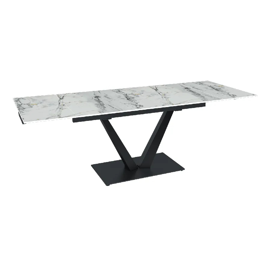 Стол с керамической столешницей «Malibu» представляет собой изысканное и функциональное обеденное место для вашего дома. Поверхность столешницы, выполненная из керамики, обеспечивает прочность, легкость в уходе и устойчивость к царапинам и температурным изменениям. Стильное металлическое основание дарит стабильность и надежность, дополняя современный дизайн стола. Данный стол идеально подходит для семейных обедов и встреч с друзьями, создавая уютную и стильную обстановку в вашем доме. Столешница модели «Malibu» может быть как компактной по площади так и просторной благодаря наличию механизма трансформации.