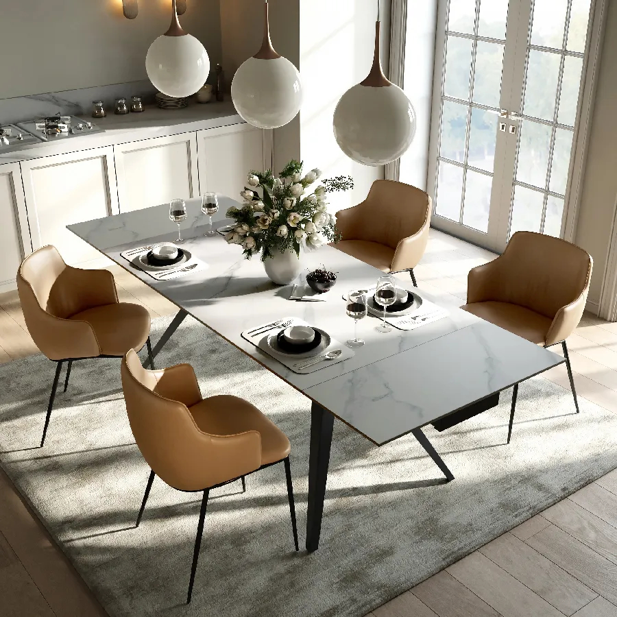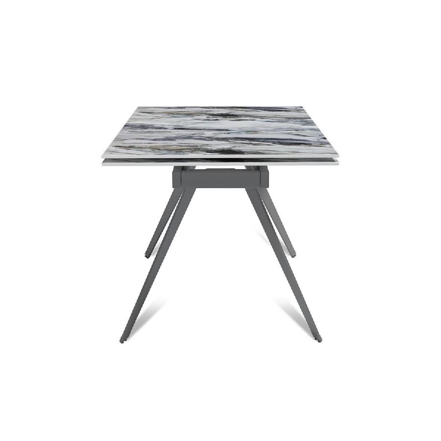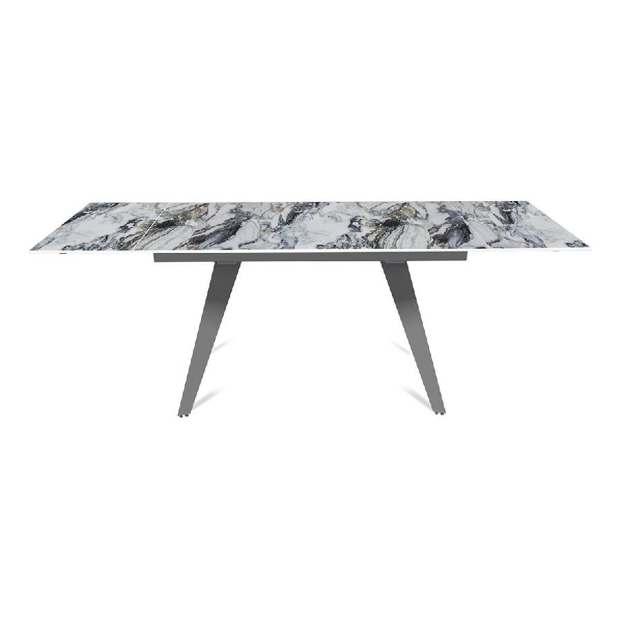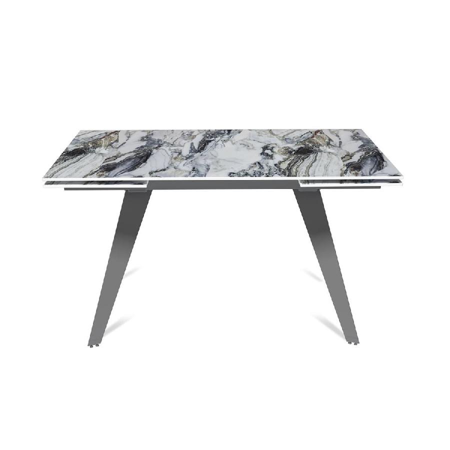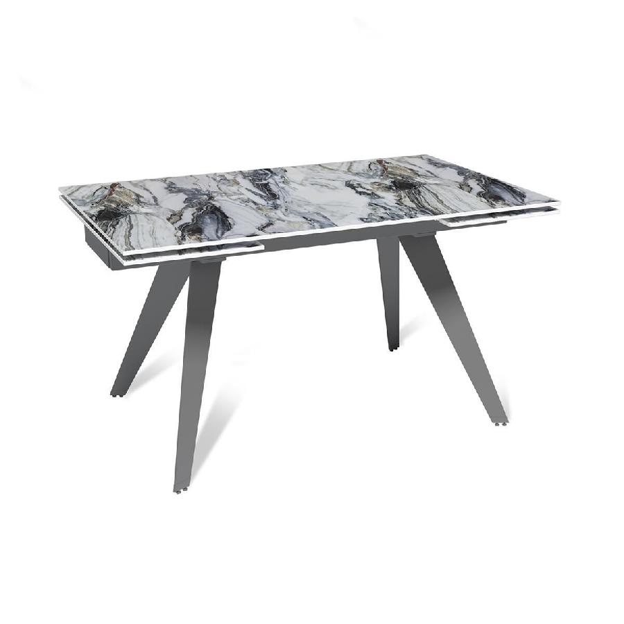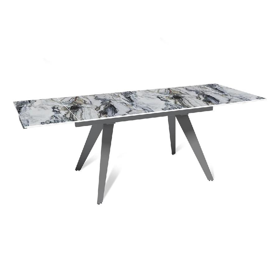 Стол с керамической столешницей «Rhein» представляет собой стильное и практичное решение для кухни или столовой. Поверхность столешницы, выполненная из керамики, обеспечивает прочность, легкость в уходе и устойчивость к царапинам и температурным изменениям. Стильное металлическое основание дарит стабильность и надежность, дополняя современный дизайн стола. Данный стол идеально подходит для семейных обедов и встреч с друзьями, создавая уютную и стильную обстановку в вашем доме. Столешница модели «Rhein» может быть как компактной по площади так и просторной благодаря наличию механизма трансформации.