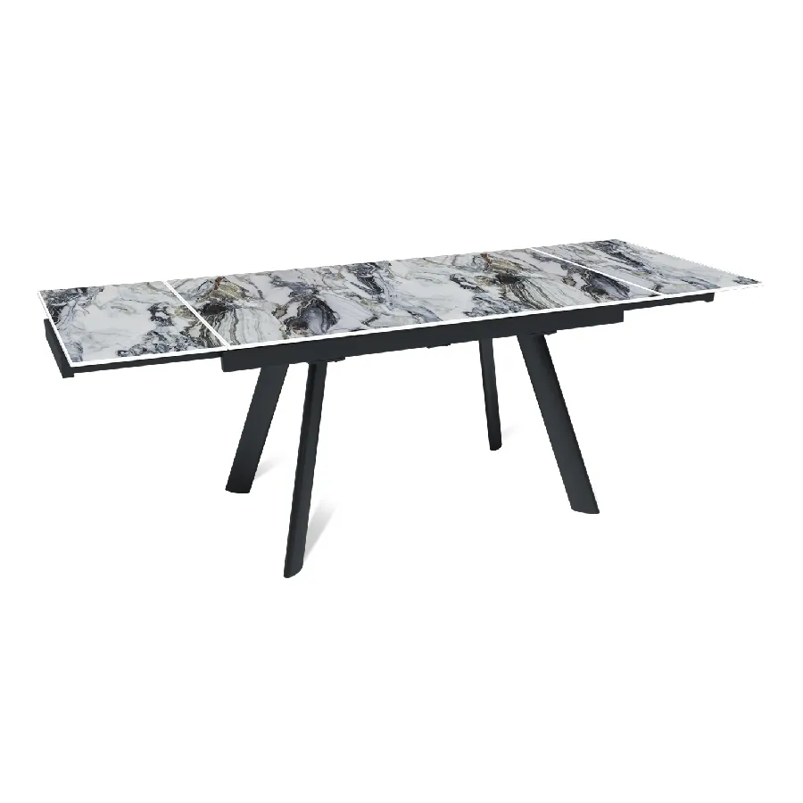 Стол «Stone» оснащен двусторонним механизмом собственного производства, который обеспечивает плавное и бесшумное выдвижение торцевых вставок по направляющим. Механизм позволяет плавно и бесшумно увеличить длину стола с 140 см до 180 или 220 см, выдвигая одну или обе боковые вставки (по 40 см каждая).